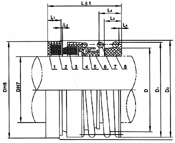 本系列结构属内装、内流、单端面、单弹簧非平衡型,适用于各种离心泵及其类似机械旋转轴的密封。