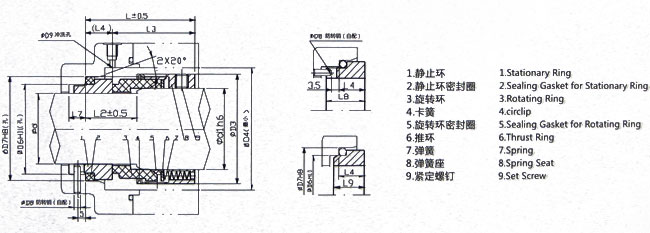 用途:用于化工、石油化工、炼油、制冷、制药、造纸、给排水、污水处理等工业泵类、反应釜、压缩机等设备的旋转轴密封,介质为水、油、有机溶剂及其它弱腐蚀性液体。