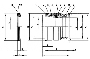 7、传动套 8、弹簧 9、弹簧座 10、静唤橡胶座 11、石墨静环或碳化硅静环