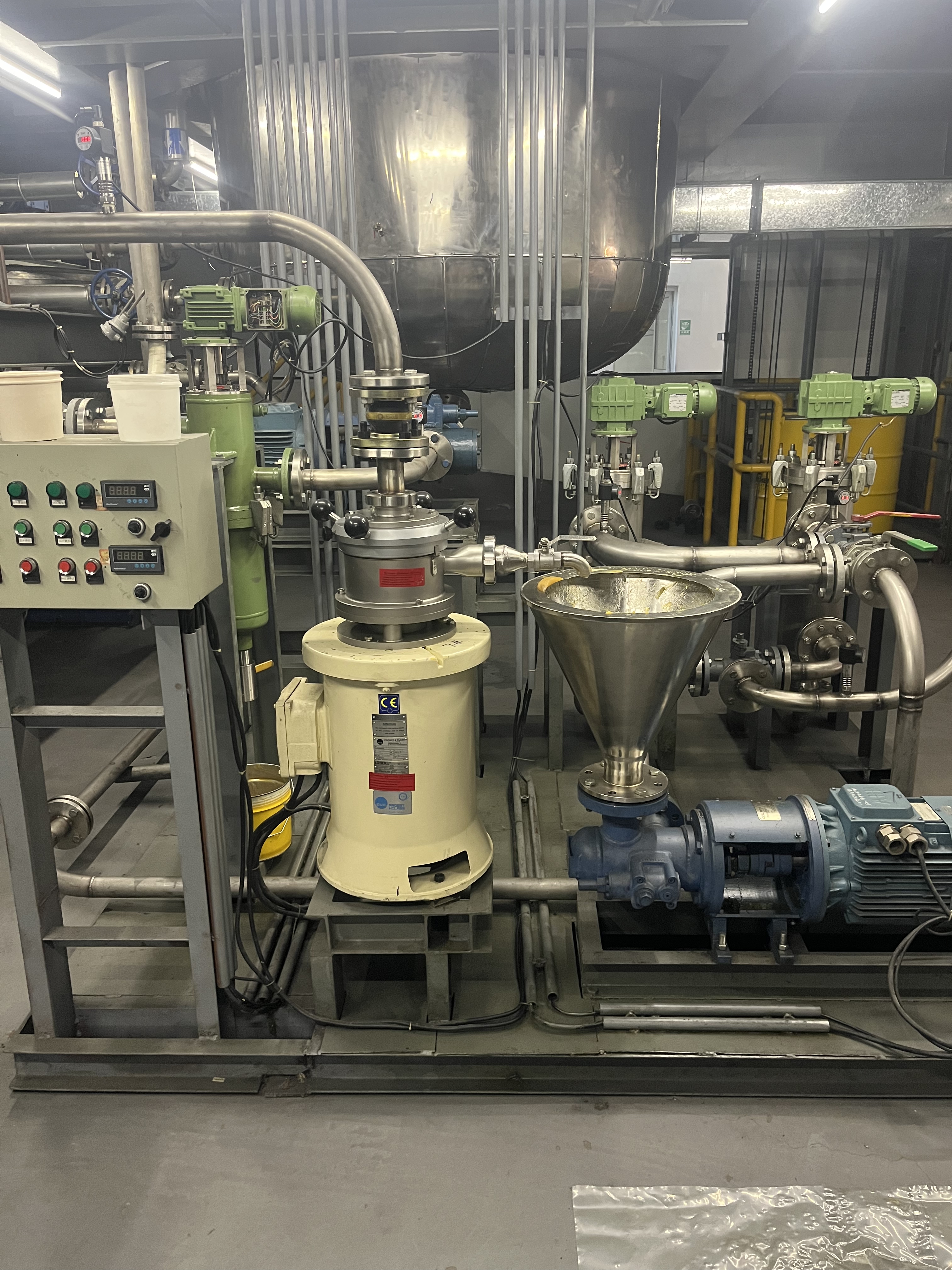 3、大型胶体磨与通过控制阀门使物料循环管道进行单一或多次循环处理